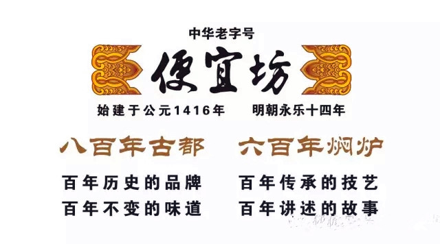 嘉靖年间,一天,任兵部员外郎的杨继盛在回家路上,见有家小店儿幽雅清静,便进入店中品尝烧鸭,只觉得味道鲜美齿颊留香。便问“此店是什么字号?掌柜的回答:人呼便宜坊,但尚无人题匾。杨继盛说道:果然方便宜人,物超所值。遂命店家取来纸墨,即兴挥毫,写下了“便宜坊”三个大字,字体雄浑,笔力遒劲。是由明代著名书法家,历史上赫赫有名的谏臣,杨继盛所提。